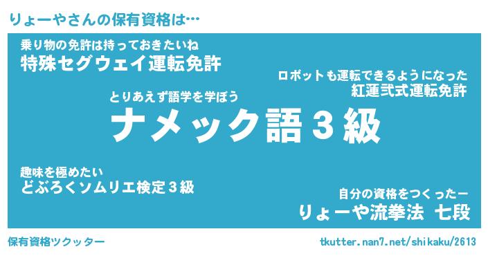 | ファンタジー風あだ名 | 『リョフェル』『エターナルリョーヤー』 |