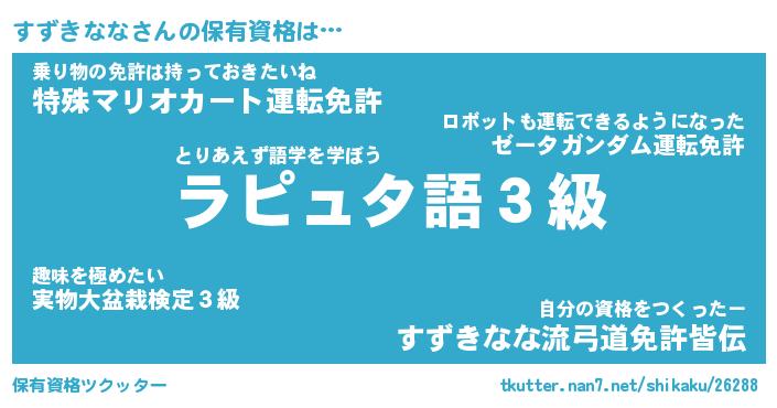 | ファンタジー風あだ名 | 『スズフェル』『エターナルスズキナナー』 |