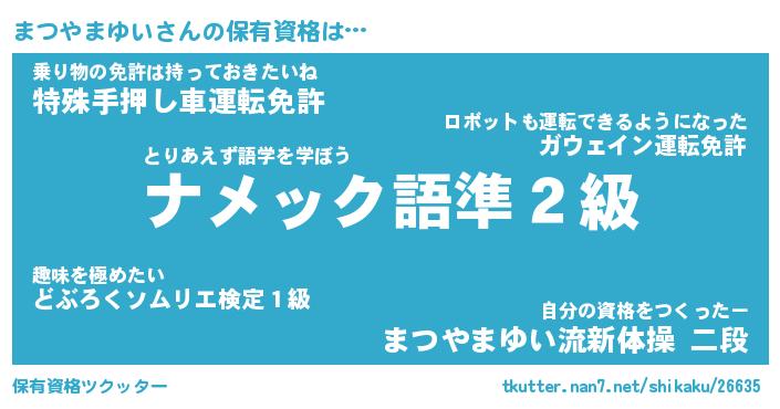 | 伝説のあだ名 | 『不死鳥のスナイパーまつやまゆい』 |