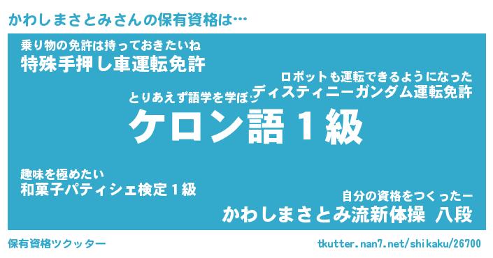 | 肩書あだ名 | 『かわしまさとみ社長』 |