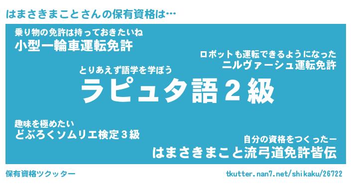 | 女子向けラノベタイトル風あだ名 | 『はまさきまこと姫と円卓の騎士』 |