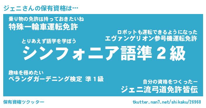 | ファンタジー風あだ名 | 『ジェフェル』『エターナルジェニー』 |