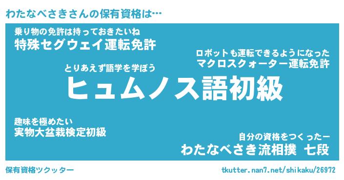 | ヒーロー風カッコイイあだ名 | 『スーパーワタナベサキ』『幻影騎士ワタ』 |
