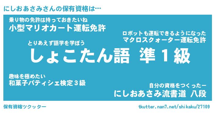 | 肩書あだ名 | 『にしおあさみ店長』『にしおあさみ班長』 |
