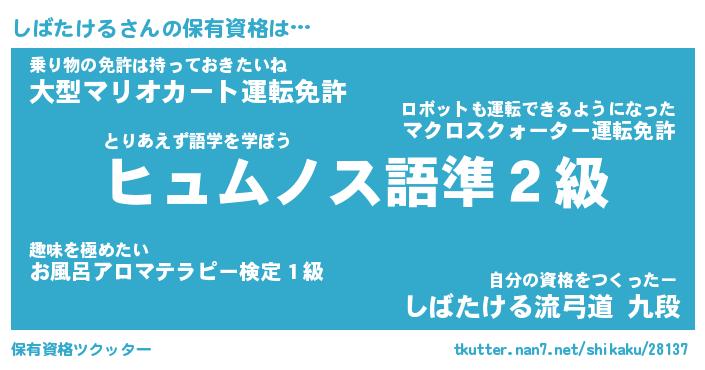 | ファンタジー風あだ名 | 『シバフェル』『エターナルシバタケルー』 |
