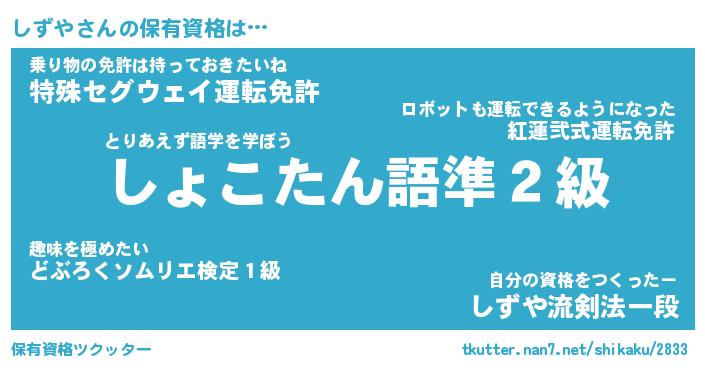 | ファンタジー風あだ名 | 『シズフェル』『エターナルシズヤー』 |