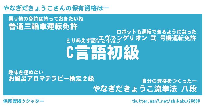 | 女子向けラノベタイトル風あだ名 | 『(仮)やなぎだきょうこのやんごとなき事情』 |
