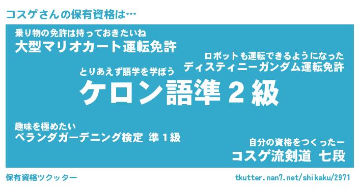 | 男性向けラノベタイトル風あだ名 | 『コスゲの憂鬱』 |