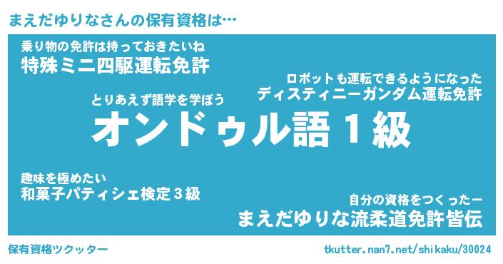 | 恥ずかしいあだ名 | 『プリティーまえだゆりな』『まえっちょ』 |