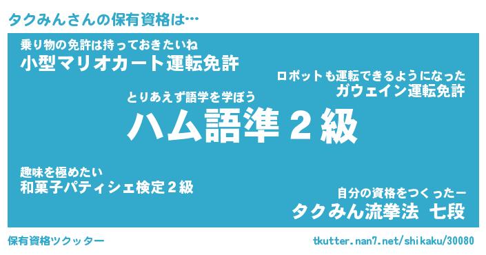 | ヒーロー風カッコイイあだ名 | 『スーパータクミン』『黄金騎士タク』 |