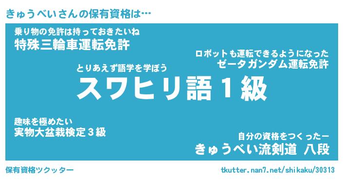 | 男性向けラノベタイトル風あだ名 | 『きゅうべいの憂鬱』 |