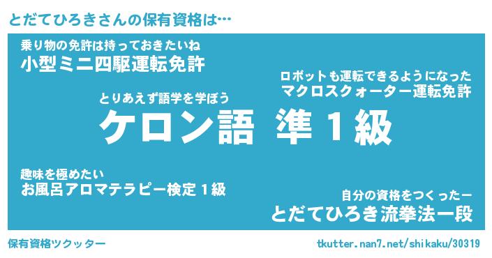| 肩書あだ名 | 『とだてひろき店長』『とだてひろき団長』 |