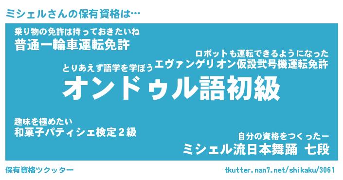 | 肩書あだ名 | 『ミシェル御曹司』『ミシェル総理大臣』 |