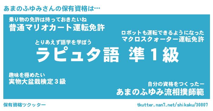| ヒーロー風カッコイイあだ名 | 『スーパーアマノフユミ』『幻影騎士アマ』 |