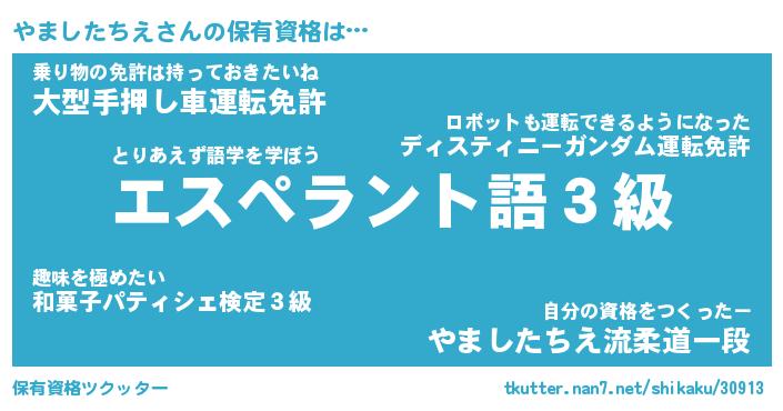 | ヒーロー風カッコイイあだ名 | 『スーパーヤマシタチエ』『天弓騎士ヤマ』 |