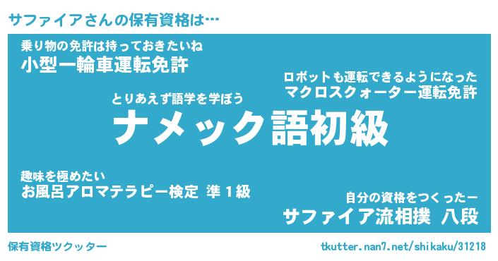 | ヒーロー風カッコイイあだ名 | 『スーパーサファイア』『天弓騎士サフ』 |