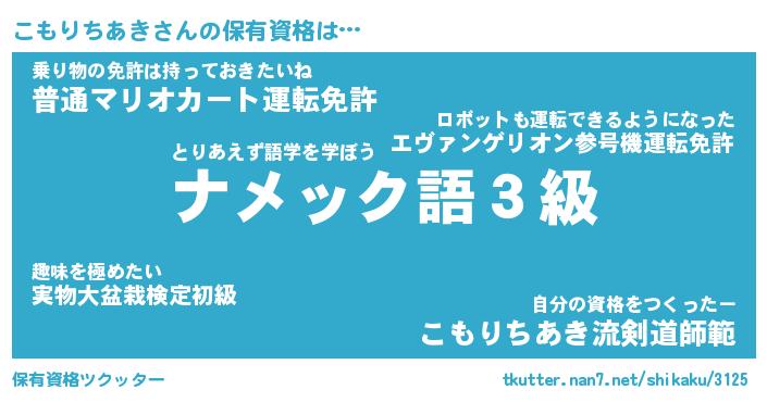 | 意味不明あだ名 | 『ペロリンこもりちあき』 |