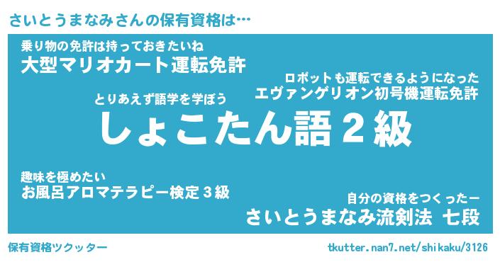 | 伝説のあだ名 | 『封印されし竜騎士さいとうまなみ』 |