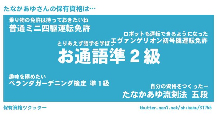 | 肩書あだ名 | 『たなかあゆ社長令嬢』『たなかあゆ団長』 |