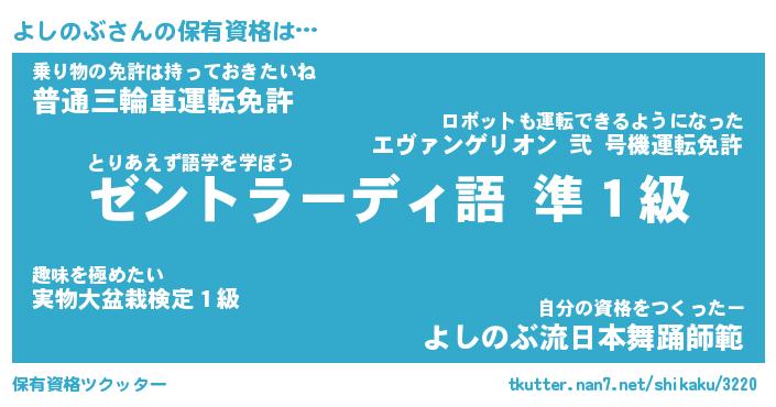 | 意味不明あだ名 | 『ペロリンよしのぶ』『永久保存よしのぶ』 |