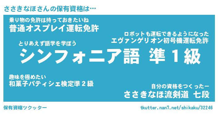 | ファンタジー風あだ名 | 『ササフェル』『エターナルササキナホー』 |