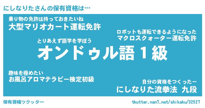 | 男性向けラノベタイトル風あだ名 | 『ニシナリタアートオンライン』 |