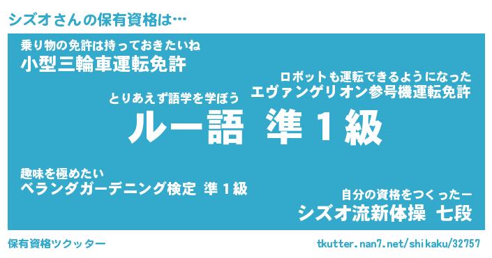 | ファンタジー風あだ名 | 『シズフェル』『エターナルシズオー』 |