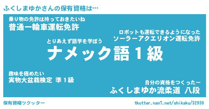 | 伝説のあだ名 | 『不死鳥の竜騎士ふくしまゆか』 |