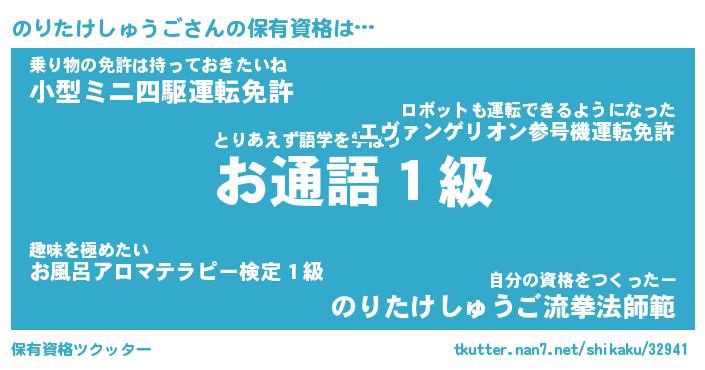 | 男性向けラノベタイトル風あだ名 | 『のりたけしゅうごの憂鬱』 |