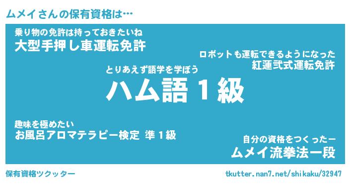 | ヘコむあだ名 | 『ムメにー』『なまこ酢』『ムメお』 |