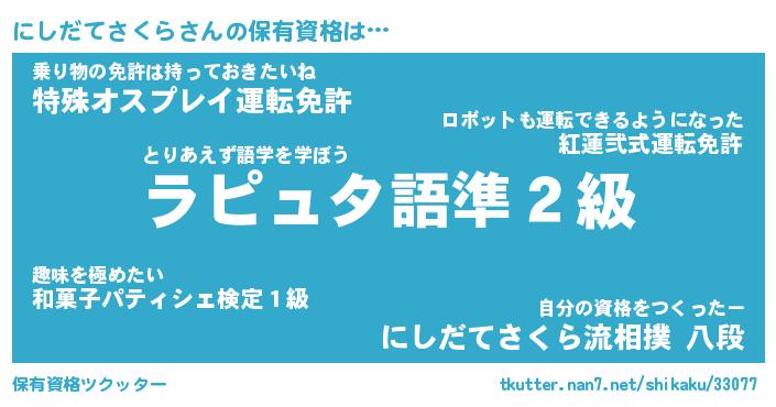 | 胡散臭い通販商品みたいなあだ名 | 『モテモテ間違いなし霊験あらたかなお札…その名も「にしだてさくら」』 |