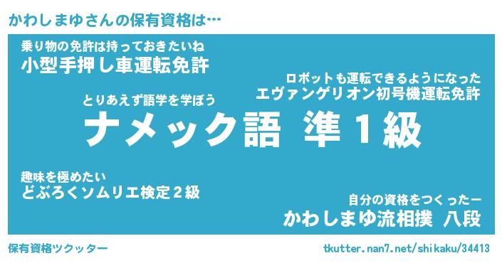 | ヒーロー風カッコイイあだ名 | 『スーパーカワシマユ』『天弓騎士カワ』 |