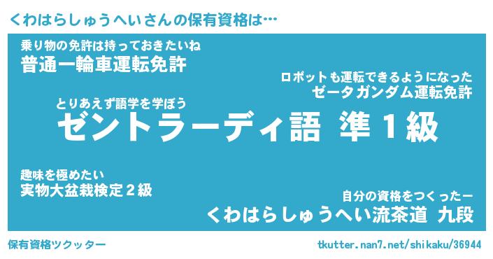| 男性向けラノベタイトル風あだ名 | 『くわはらしゅうへいの憂鬱』 |