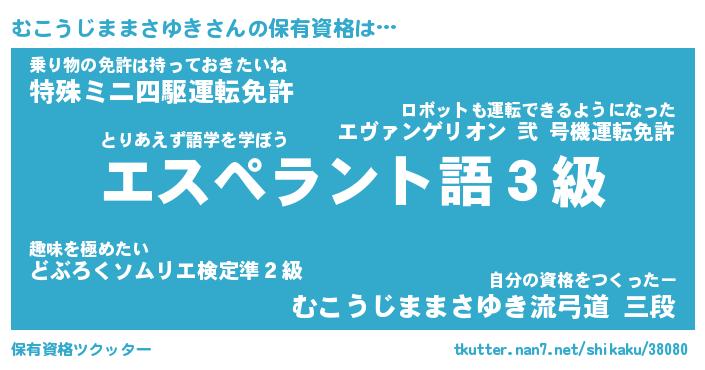| 女子向けラノベタイトル風あだ名 | 『(仮)むこうじままさゆきのやんごとなき事情』 |