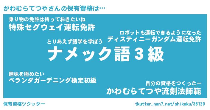 | 肩書あだ名 | 『かわむらてつや店長』 |