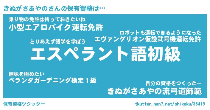 | 伝説のあだ名 | 『伝説のスナイパーきぬがさあやの』 |
