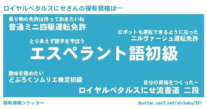 | 男性向けラノベタイトル風あだ名 | 『ロイヤルペタルスにせの憂鬱』 |