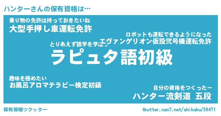 | ファンタジー風あだ名 | 『ハンフェル』『エターナルハンターー』 |