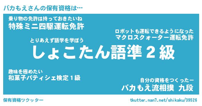 | ヒーロー風カッコイイあだ名 | 『スーパーバカモエ』『銀牙騎士バカ』 |