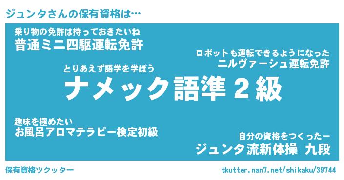 | ポケモン風あだ名 | 『ジュチュウ』『ジュンダネ』 |