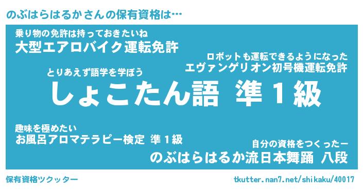 | ツイッター | のぶはらはるかさんのツイッターID『namakemono_idle』 |
