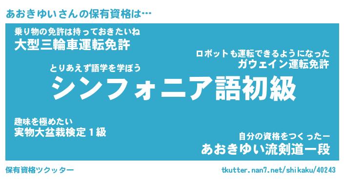 | ファンタジー風あだ名 | 『アオフェル』『エターナルアオキユイー』 |