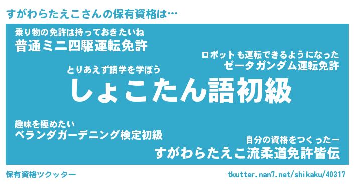 | 伝説のあだ名 | 『封印されしスナイパーすがわらたえこ』 |