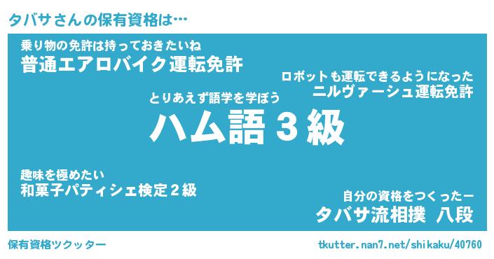 | ファンタジー風あだ名 | 『タバフェル』『エターナルタバサー』 |