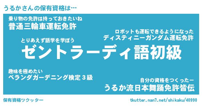 | 自動車の名前っぽいあだ名 | 『プリウル』『ウクア』『デミウ』 |