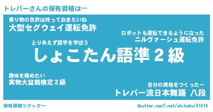 | 欧米人風あだ名 | 『マイケルトレバー』『ウサイントレバー』 |