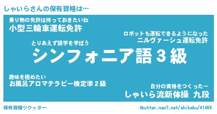| 意味不明あだ名 | 『ペロリンしゃいら』『永久保存しゃいら』 |