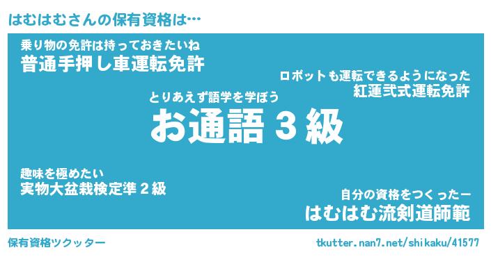 | ファンタジー風あだ名 | 『ハムフェル』『エターナルハムハムー』 |