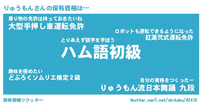 | 男性向けラノベタイトル風あだ名 | 『リュウモンアートオンライン』 |