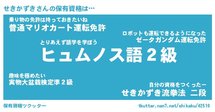 | ヒーロー風カッコイイあだ名 | 『スーパーセキカズキ』『天弓騎士セキ』 |